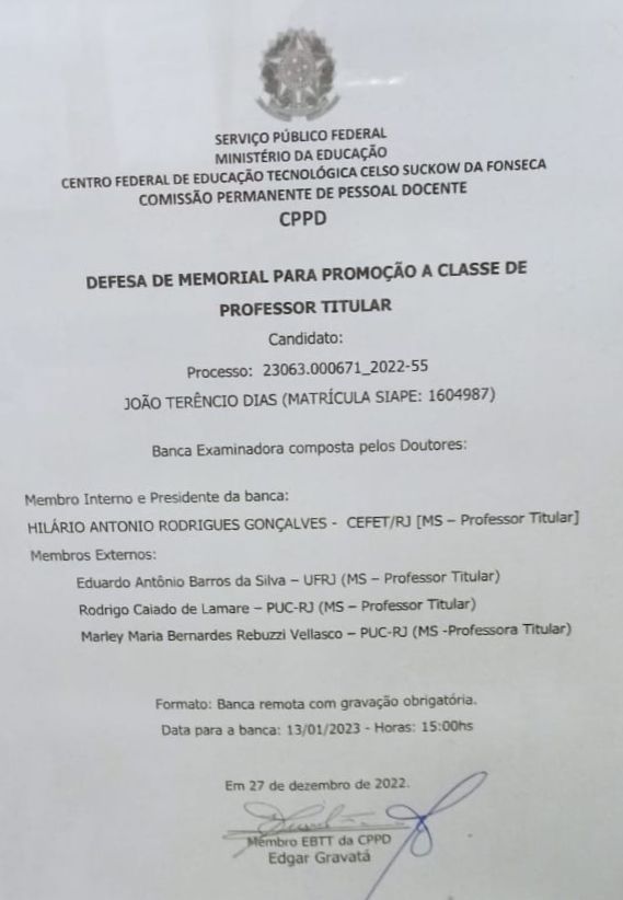 PROCLAMA Antonio José Rocha Luzardo - Data:15/12/2023 as 13:00 Formato: Remoto - Link Reunião-Clique para ingressar na reunião