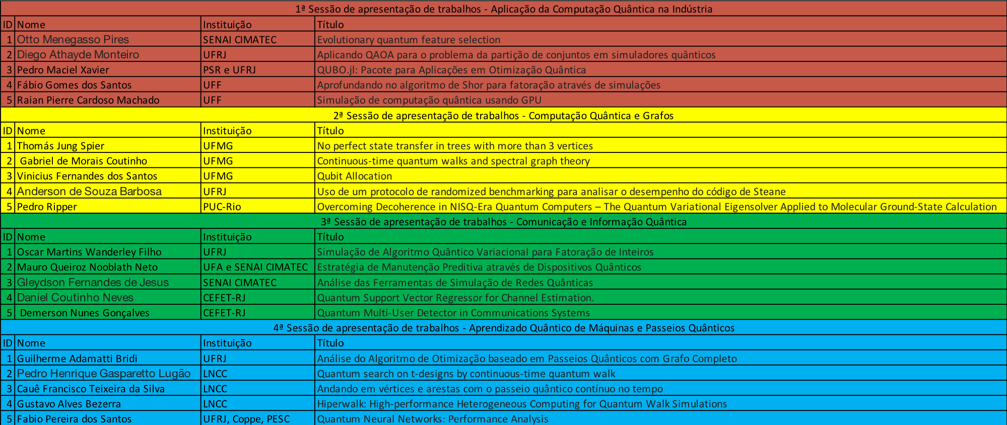 O EGPCIQ é um evento regional com a participação de palestrantes nacionais que contempla as áreas temáticas de Aplicações da Computação Quântica na Indústria, Computação Quântica e Grafos, Comunicação e Informação Quânticas e Aprendizado Quântico de Máquinas.
