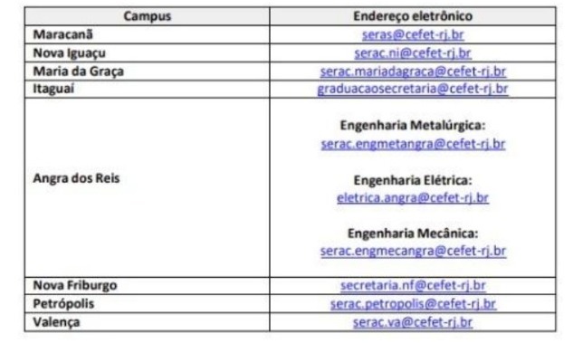 Dúvidas sobre o procedimento de matrícula, observe o quadro a seguir: