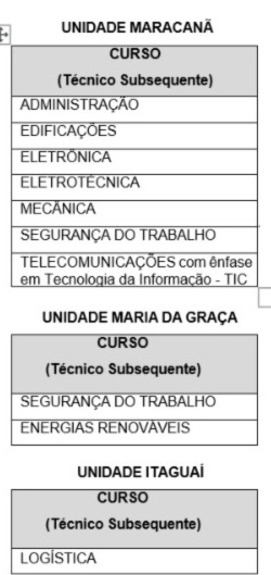 2 - A inscrição no processo seletivo, conforme descrito na alínea "c" do item 3.2 do Edital CCONC nº 02/2025, é para ser realizada para o curso técnico de administração, Maracanã, entretanto, cabe-nos reforçar, essa inscrição não significa que seja exclusiva para o referido curso, pois valerá para concorrer a todas as vagas remanescentes dos diferentes cursos acima informados.