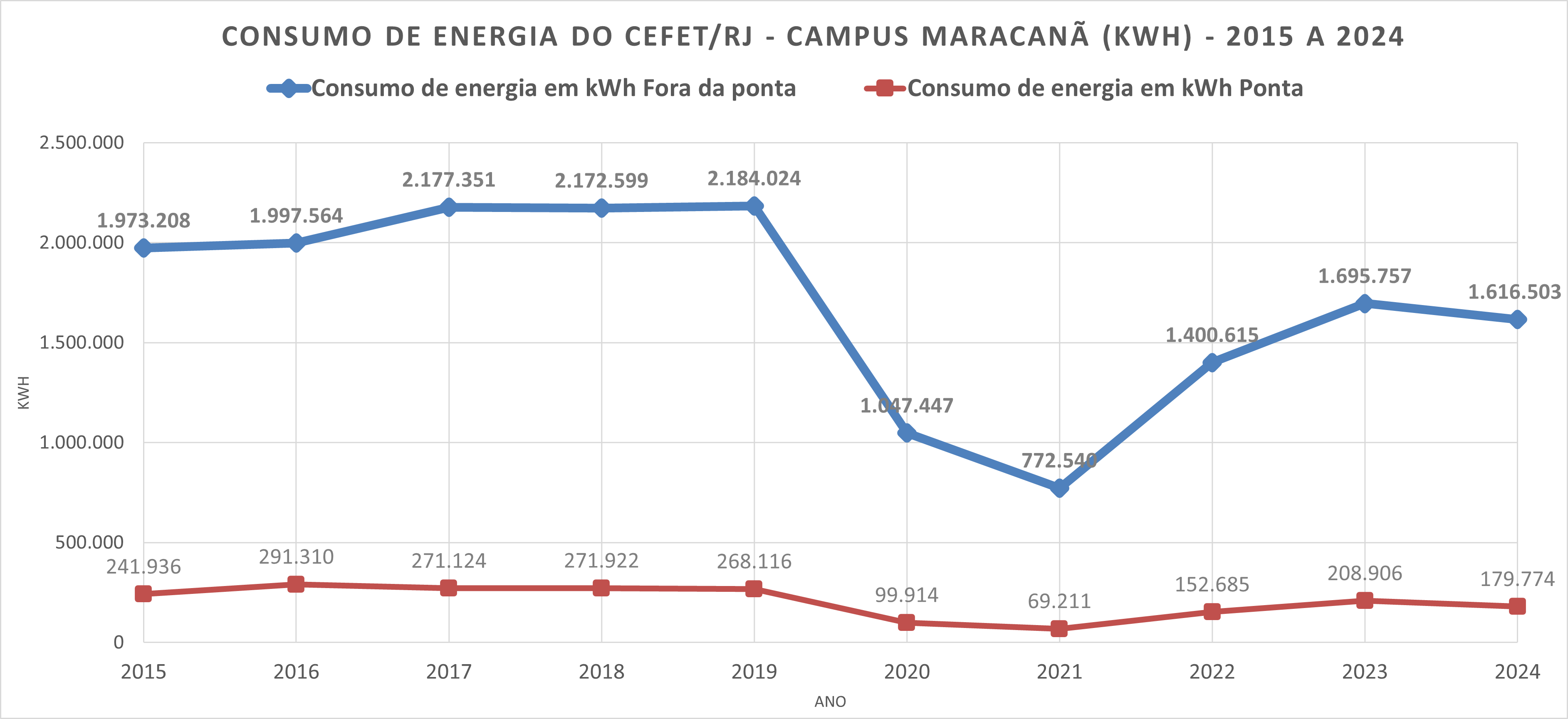 ACOMPANHAMENTO DO CONSUMO ANUAL DE ENERGIA, EM kWh, NO CAMPUS MARACANÃ DURANTE O PERÍODO DE 2015 a 2024.