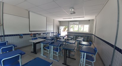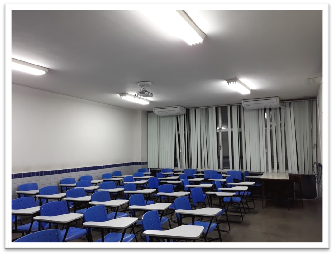 As salas de aula fazem uso de ILUMINAÇÃO NATURAL, em função da presença de janelas, que também contribuem para a VENTILAÇÃO NATURAL CRUZADA. Essa estrutura também contribui para o conforto térmico. Existem diversas salas de aula, no primeiro e segundo andar do bloco D, que possuem duas grandes janelas.