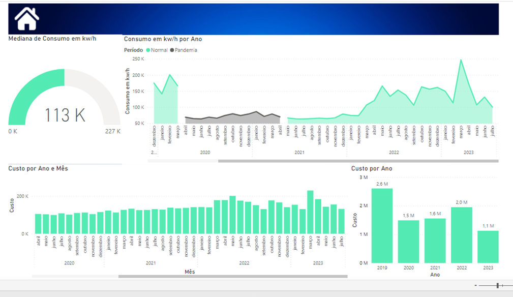 DASHBOARD DE SUSTENTABILIDADE para acompanhamento do CONSUMO DE ENERGIA do campus Maracanã do CEFET/RJ, usando a ferramenta Power BI.