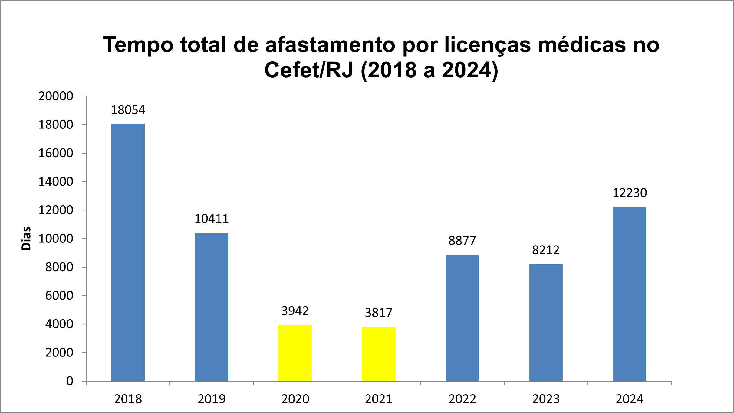 Há um setor na instituição, a DIVISÃO DE ATENÇÃO À SAÚDE E PERÍCIAS (DASPE), que busca orientar o servidor no uso de atividades, na promoção e educação em saúde, na gestão do restaurante estudantil e acompanhamentos de situações que lidam com a saúde do trabalhador, como o projeto que auxilia no controle da pressão arterial, lançado em abril de 2024. No caso do monitoramento de servidores que solicitam afastamento, há um indicador TEMPO DE AFASTAMENTO POR LICENÇAS MÉDICAS, que é observado desde 2018 no CEFET/RJ.