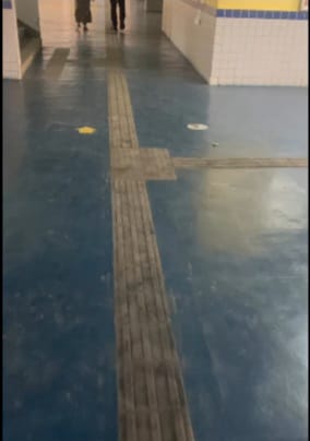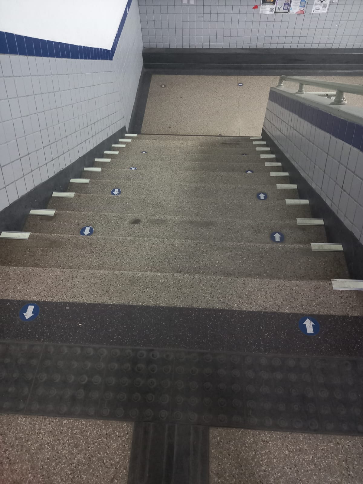 Sinalizador visual para os degraus das escadas: faixa fotoluminescente auto-adesiva
