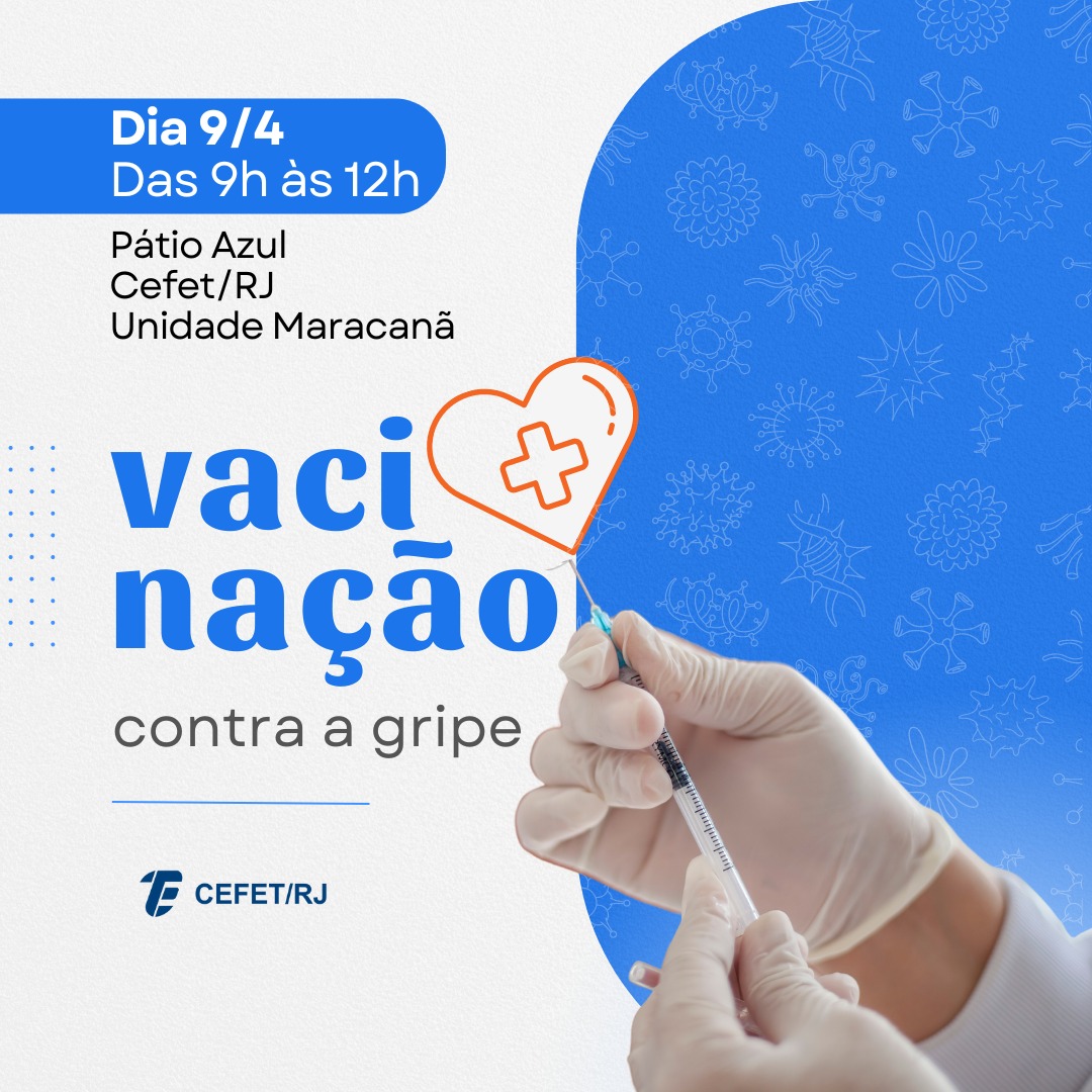 A Divisão de Atenção à Saúde e Perícias (DASPE) do Cefet/RJ comunica que, em parceria com o posto de saúde da Rua do Matoso (CMS Hélio Pellegrino), a Unidade Maracanã promoverá a vacinação contra a gripe. O atendimento acontecerá no dia 9/4, no Pátio Azul, das 9h às 12h. A campanha é destinada a toda comunidade (alunos, docentes, técnico-administrativos e terceirizados). Não perca essa oportunidade!