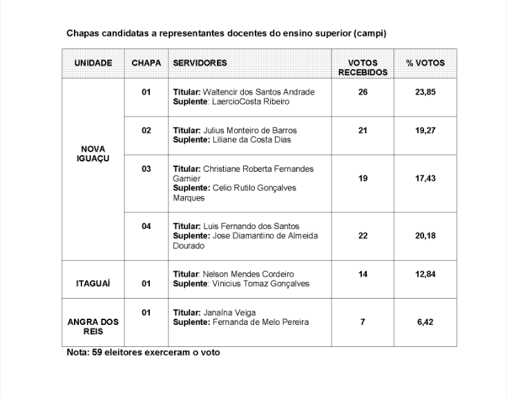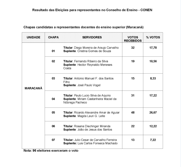 Resultado das eleições para o Conselho de Ensino (CONEN)