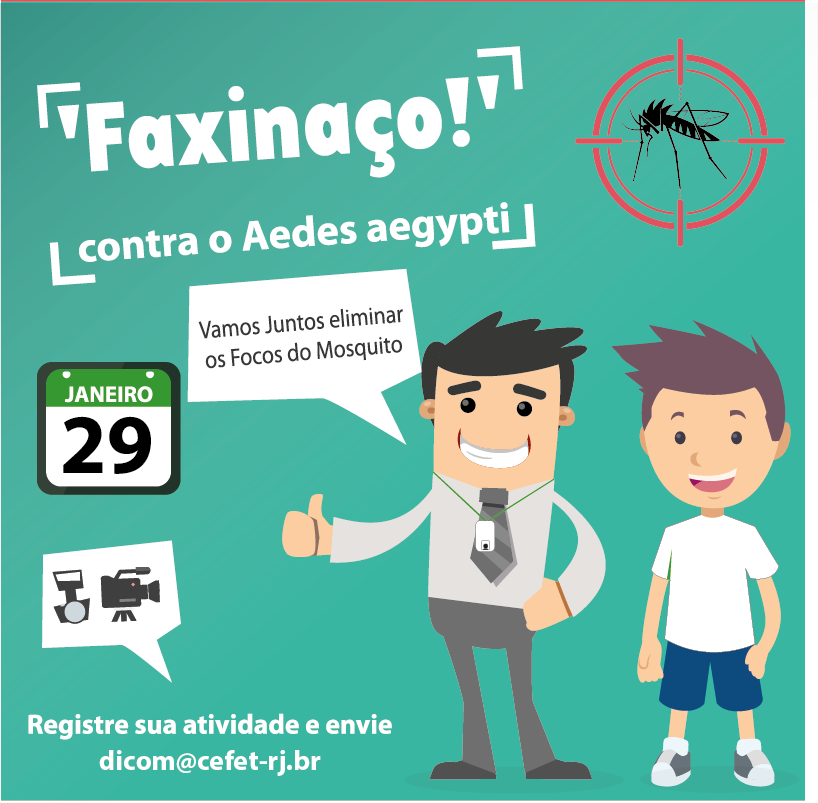 O governo federal lançou uma campanha para eliminação dos focos do mosquito Aedes aegypti em todas as suas dependências físicas. Alunos e servidores, participem!