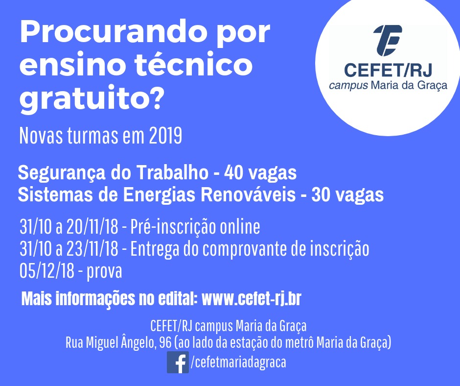 Processo seletivo para os cursos técnicos subsequentes 2019 (campus Maria da Graça)