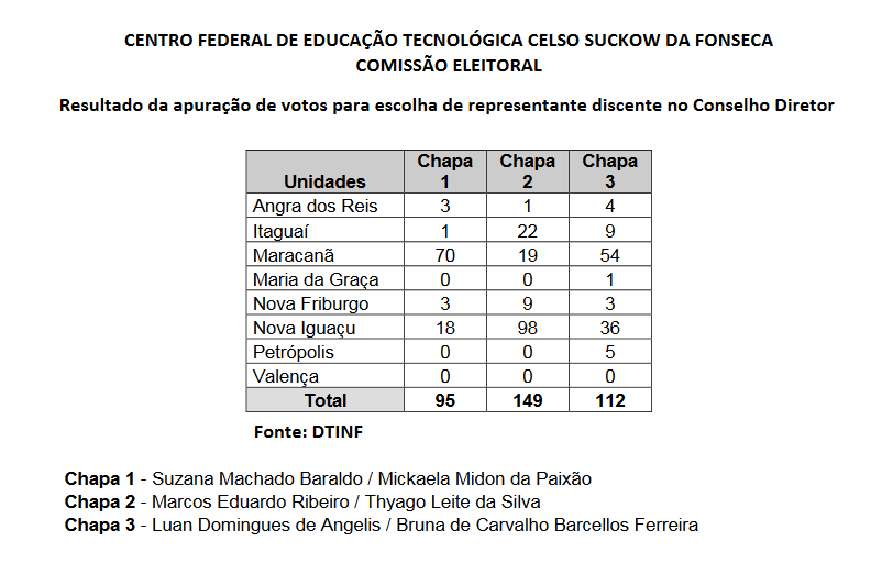 Resultado da apuração dos votos para escolha de representante discente no CODIR
