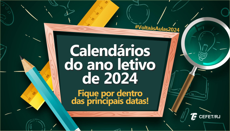 O Cefet/RJ, por meio da Diretoria de Ensino (DIREN) e da Diretoria de Pesquisa e Pós-Graduação (DIPPG), dá as boas-vindas aos alunos de todos os níveis de ensino e unidades da instituição para o ano letivo de 2024. A DIREN e a DIPPG informam, ainda, que os calendários acadêmicos estão disponíveis para consulta no site institucional.