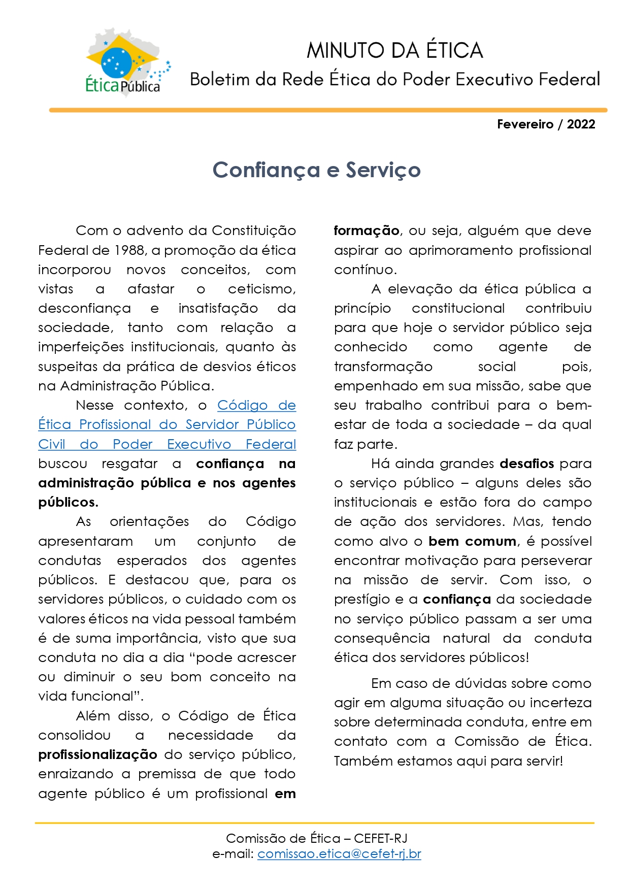 Este é um espaço de comunicação com a Comissão de Ética do Cefet/RJ.