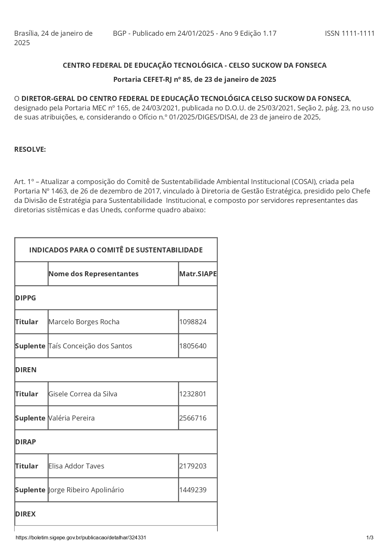 A portaria atualizada é a Portaria n. 85/2025.