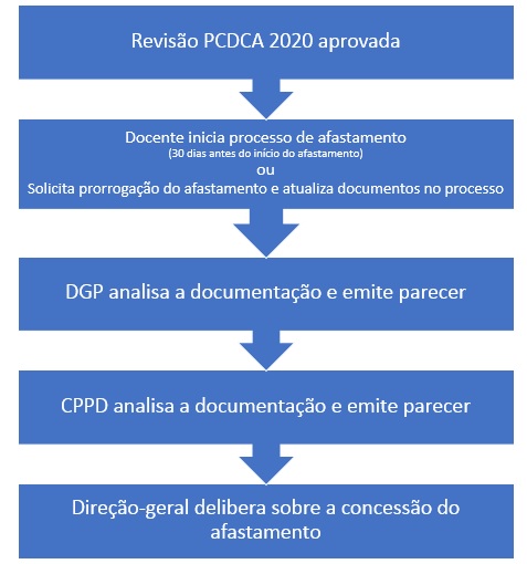 Por essa razão, a Divisão de Capacitação e Desenvolvimento do Departamento de Gestão de Pessoas (DICAP/DGP) e a Comissão Gestora do Plano Institucional de Capacitação Docente (CG-PICD) estão iniciando a revisão dos Planos de Capacitação Docente dos Colegiados Acadêmicos (PCDCAs) de 2020, exclusivamente para prorrogações de afastamentos em andamento, alterações de data e exclusões de afastamentos previstos nos PCDCAs para início em 2020. Essa revisão tem como objetivo possibilitar ajustes no planejamento de capacitações de 2020 para atender às necessidades de docentes e colegiados afetados pelo isolamento social.