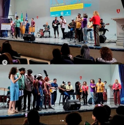 Para finalizar a cerimônia, o Bandão do Cefet/RJ exibiu o espetáculo “Cura”, simbolizando a volta das atividades presenciais após o período da pandemia. O repertório variado incluiu músicas em tupi-guarani, afro-brasileiras, além de samba e MPB .