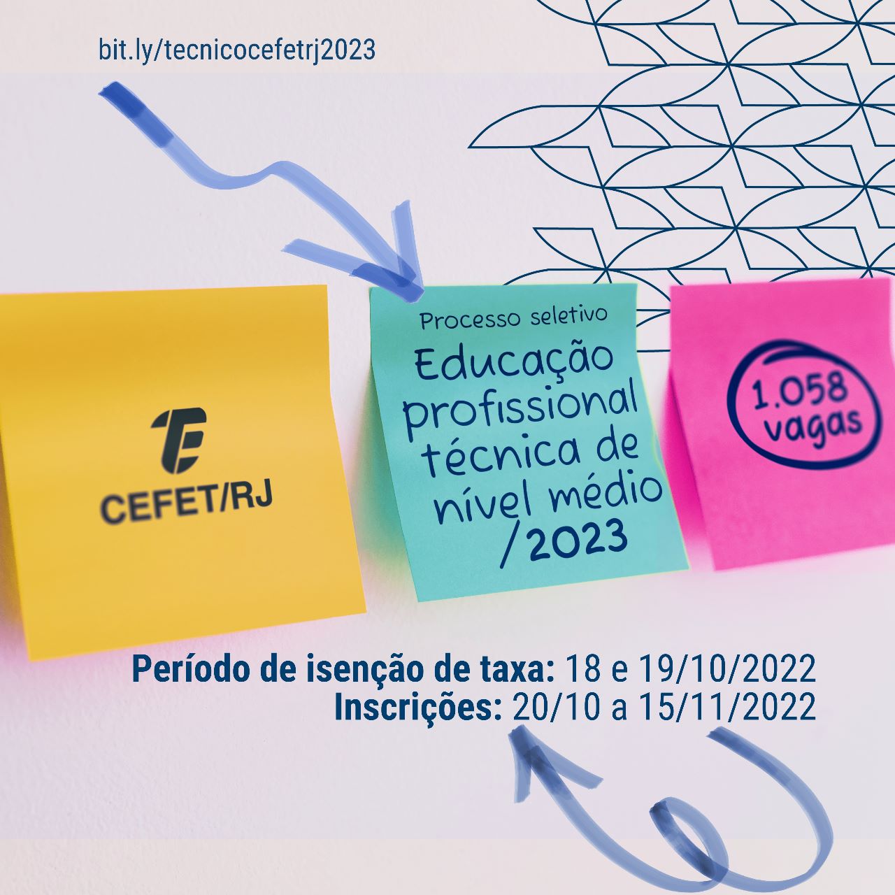 Iniciam, na próxima quinta-feira (20), as inscrições para o processo seletivo que oferta 1.058 vagas para educação técnica de nível médio do Cefet/RJ. As oportunidades estão distribuídas em 19 cursos das oito unidades da instituição. O prazo encerra em 15 de novembro.