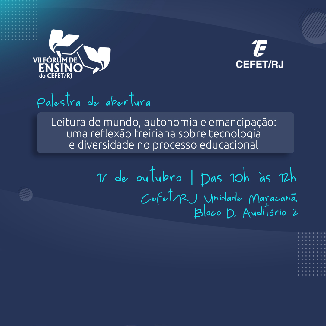 Entre os dias 17 e 18 de outubro, o Cefet/RJ promove o VII Fórum de Ensino, durante a Semana de Ensino, Pesquisa e Extensão (Sepex).