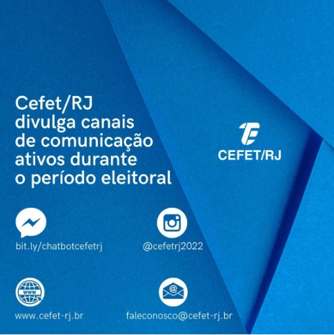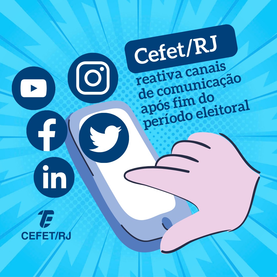 Após o fim das eleições de 2022, o Cefet/RJ reativa o seu perfil oficial @cefet_rj para divulgar as notícias, avisos e eventos de interesse da comunidade acadêmica e do público em geral. A página se manteve temporariamente fora do ar, entre os dias 2 de julho e 30 de outubro, em atendimento às restrições determinadas pela Secretaria Especial de Comunicação Social (Secom).