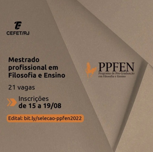 Já está disponível para consulta o edital que oferta 21 vagas para o curso de mestrado profissional do Programa de Pós-Graduação em Filosofia e Ensino (PPFEN). Há reserva de vagas para negros e indígenas, pessoas com deficiência e pessoas trans.