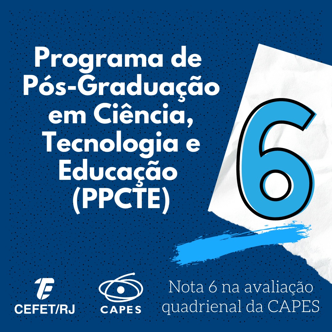 O Programa de Pós-Graduação em Ciência, Tecnologia e Educação (PPCTE) do Cefet/RJ recebeu nota 6 na avaliação quadrienal da CAPES, a maior obtida por um programa da Rede Federal de Educação Profissional, Científica e Tecnológica.