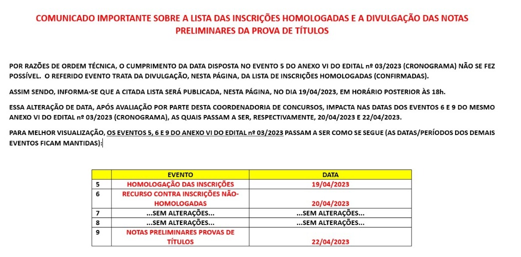 HOMOLOGAÇÃO DAS INSCRIÇÕES: