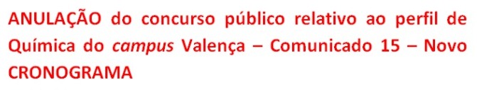 Comunicado 15 (28/09/2023): Arquivo (Sobre a anulação do concurso público relativo ao perfil de Química do campus Valença)
