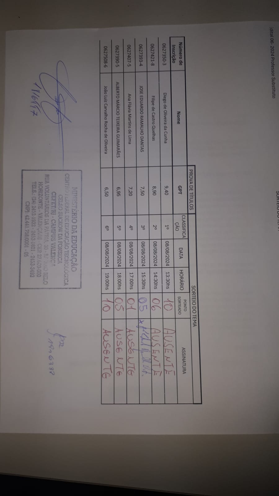 Procurar o Local(Setor) onde estão realizando o Sorteio do Edital 06/2024 - Professor Substituto.