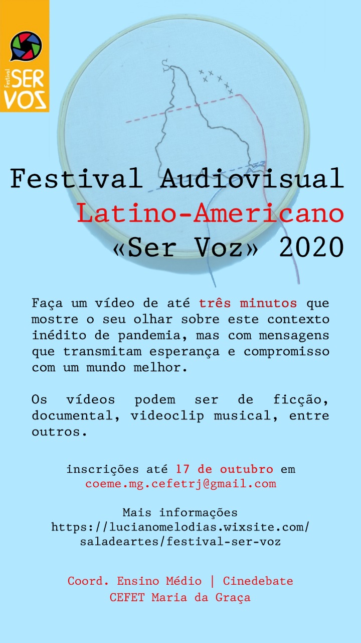 Mais informações sobre o festival de cinema estudantil na Sala de Artes do professor Luciano Dias https://lucianomelodias.wixsite.com/saladeartes/festival-ser-voz