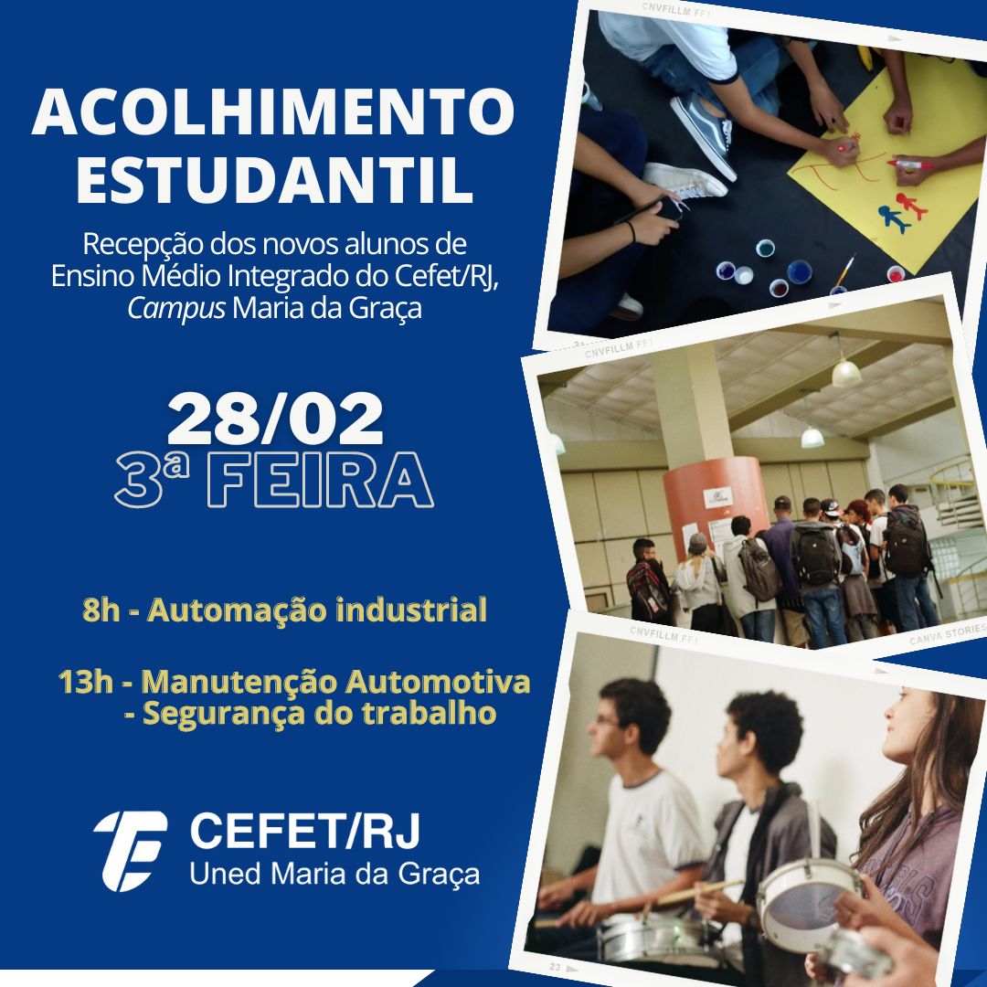A Uned Maria da Graça do CEFET-RJ apresenta aos novos alunos do ensino médio integrado as atividades de acolhimento que serão realizadas nos dia 28 de Fevereiro e 02 de Março.