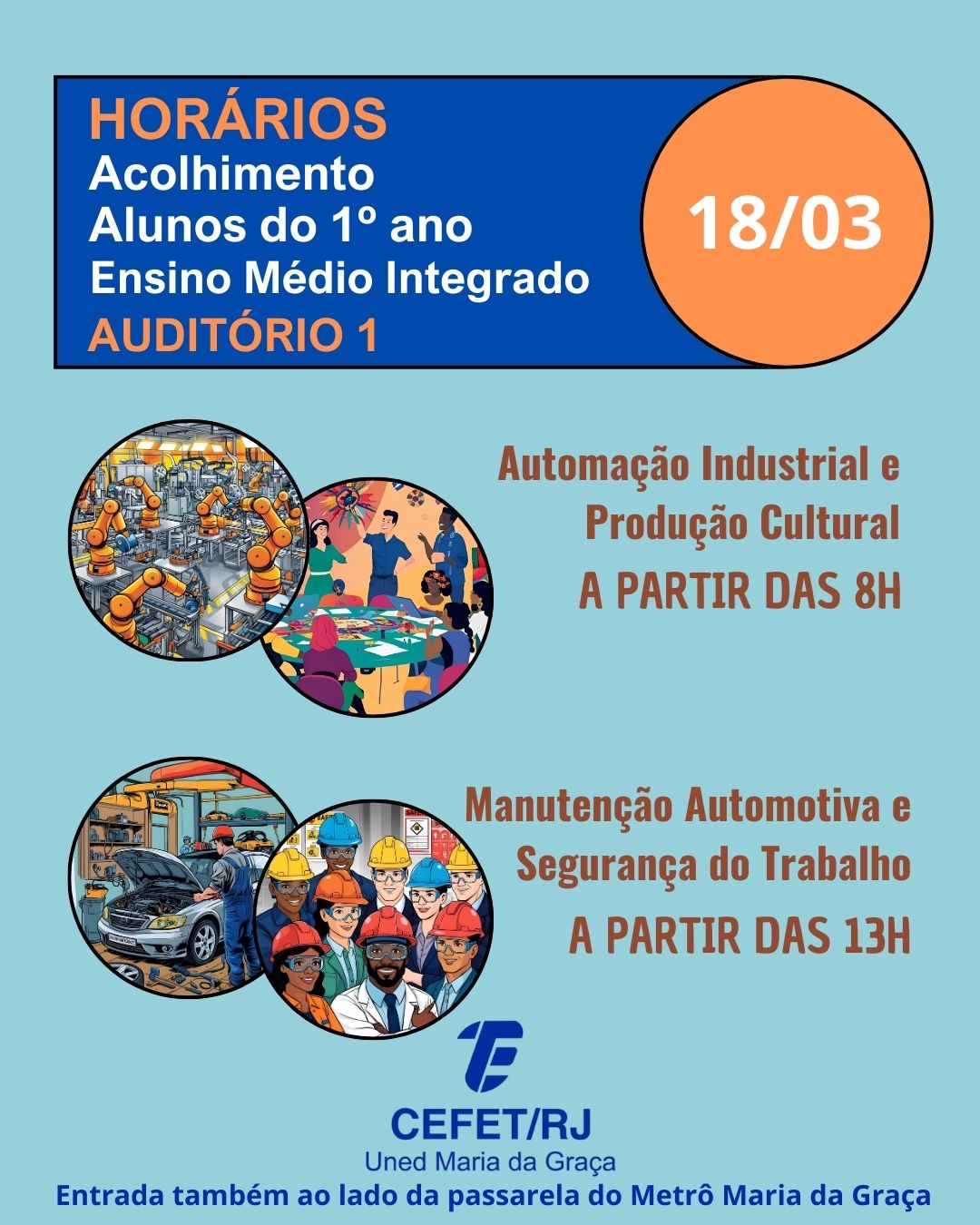 Divulgados os horários do ano letivo de 2025. Ensino Médio Integrado: Automação Industrial; Manutenção Automotiva; Produção Cultural; Segurança do Trabalho. Ensino Médio...