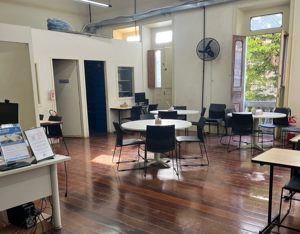 Entrada: devido à obra no 1º andar da Biblioteca, o espaço está funcionando no 2º andar. O acesso deve ser feito pela porta lateral, na Rua Marechal Deodoro.