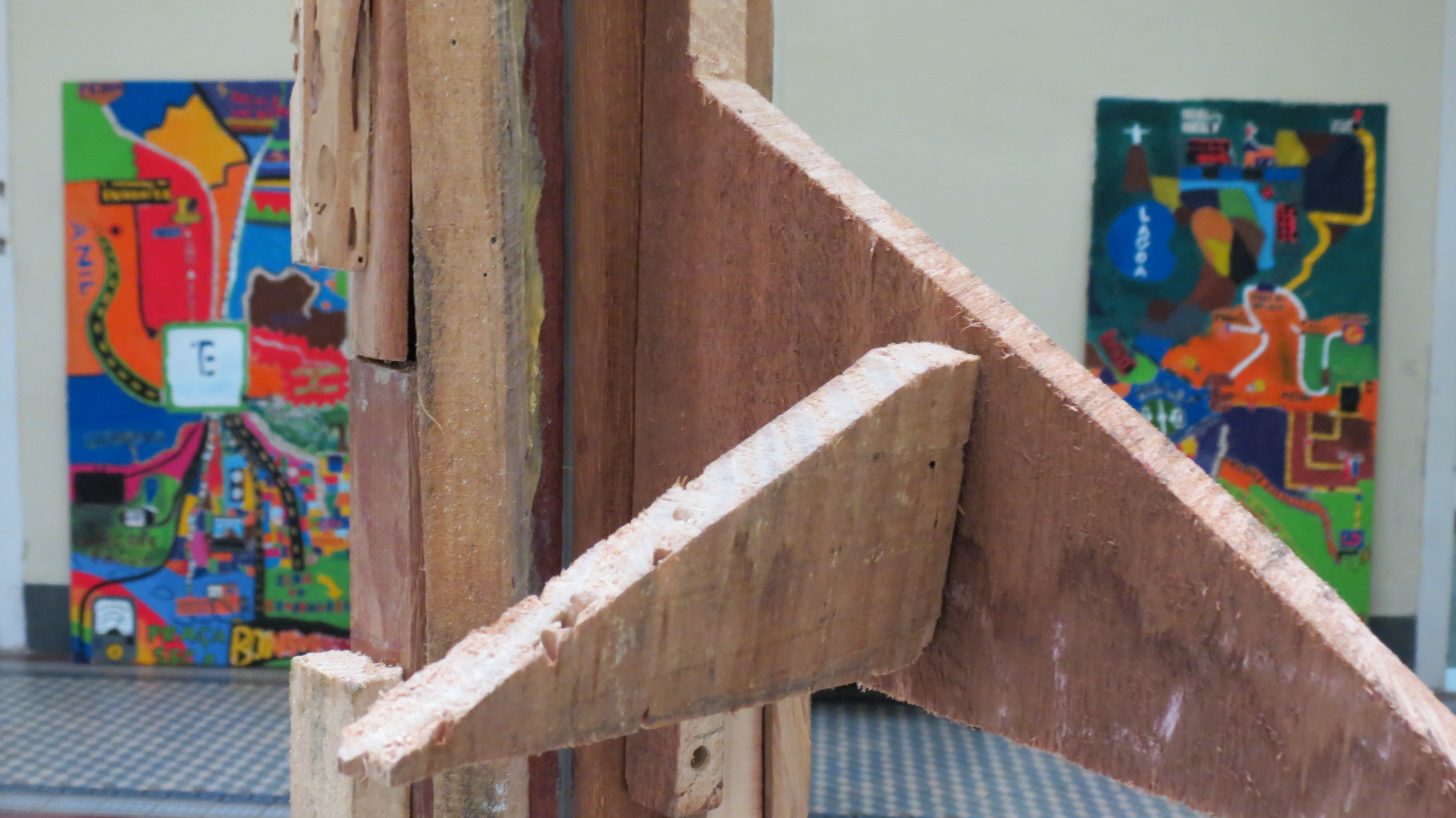 Detalhe da "Reárvore" com duas pinturas ao fundo