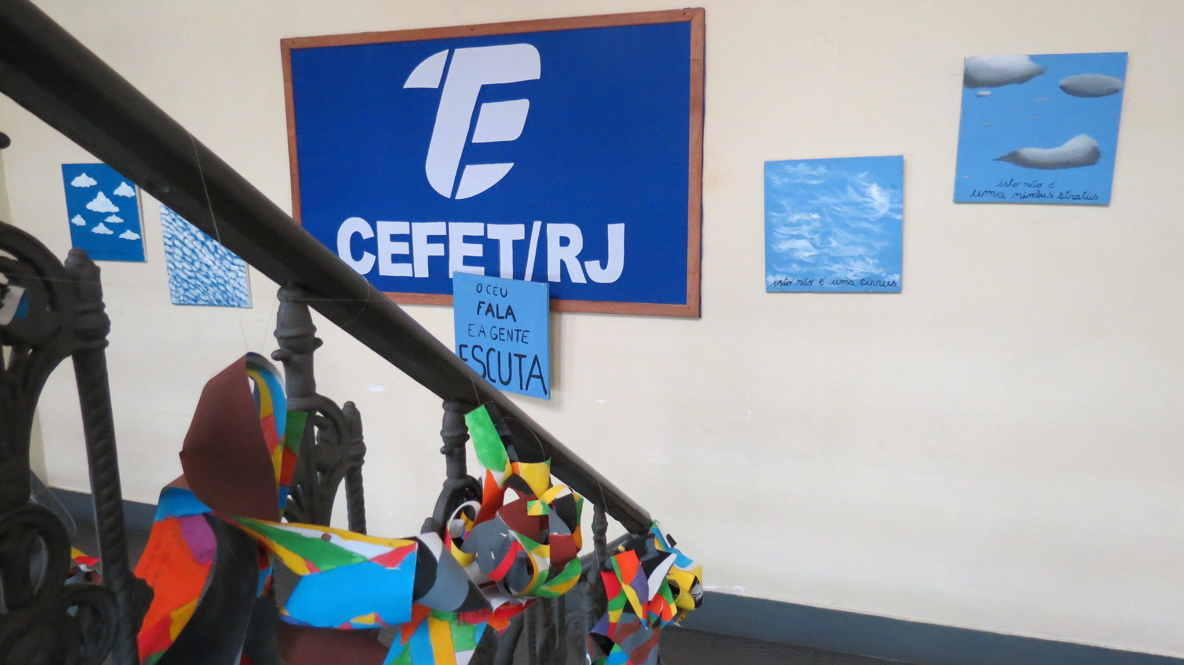Pinturas e reflexões plásticas em madeira, elástico, serragem, entre outros materiais, têm despertado a atenção de quem passa pelo hall de entrada e a escada principal do campus Petrópolis. Os trabalhos visuais e conceituais foram produzidos por alunos do ensino médio/técnico integrado do campus Maracanã, dando origem à exposição “Todos os caminhos levam ao Cefet/RJ”.