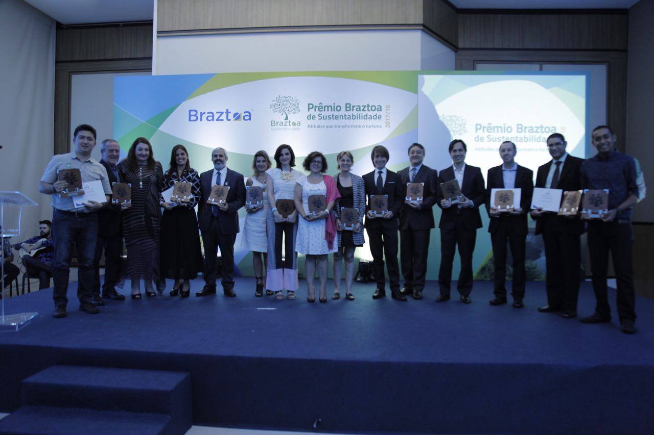Os vencedores do Prêmio Braztoa de Sustentabilidade 2017. O professor Marcelo Porretti representou o Cefet/RJ campus Petrópolis na premiação. (Fotos: Braztoa)