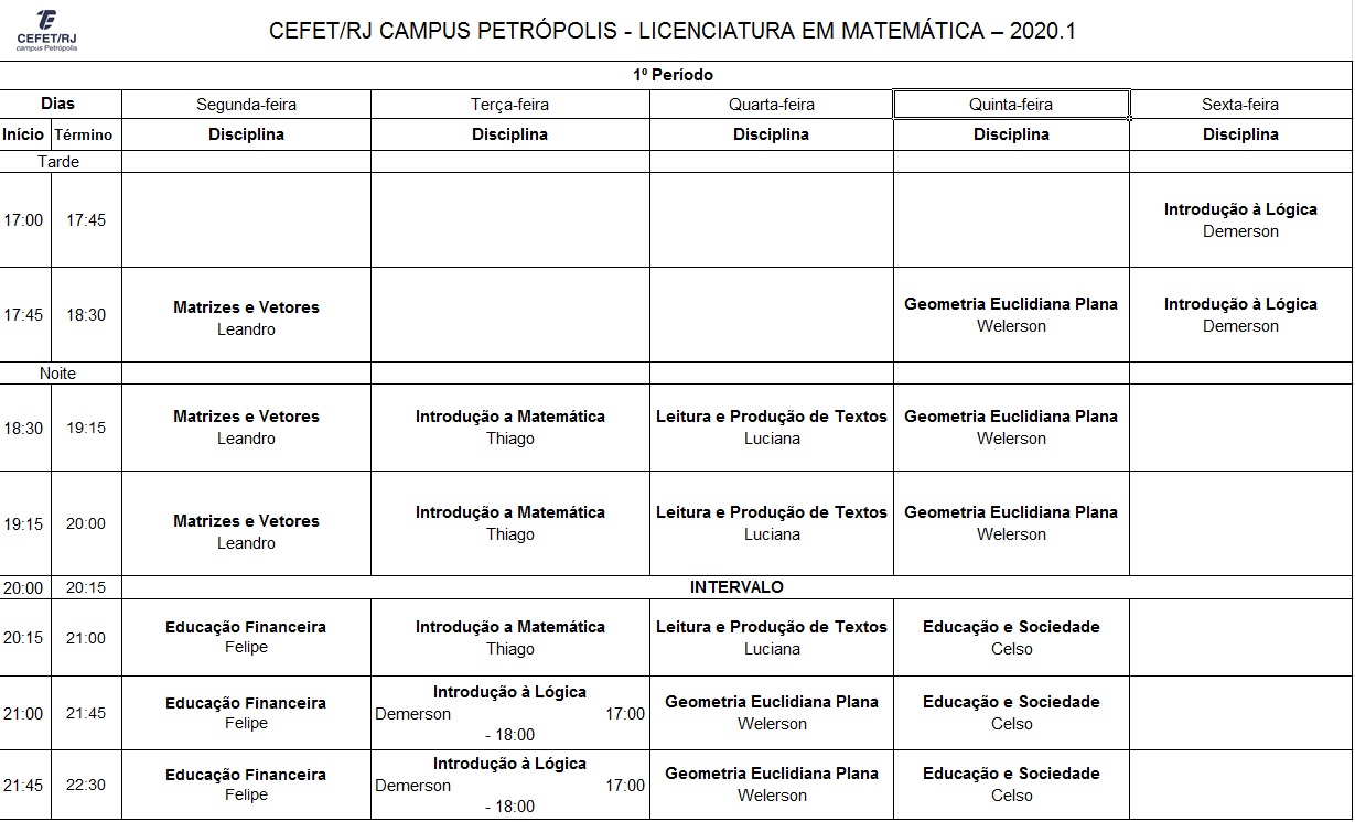A Gerência Acadêmica do Cefet/RJ campus Petrópolis disponibilizou as grades de horários dos cursos da unidade para este 1º semestre de 2020.