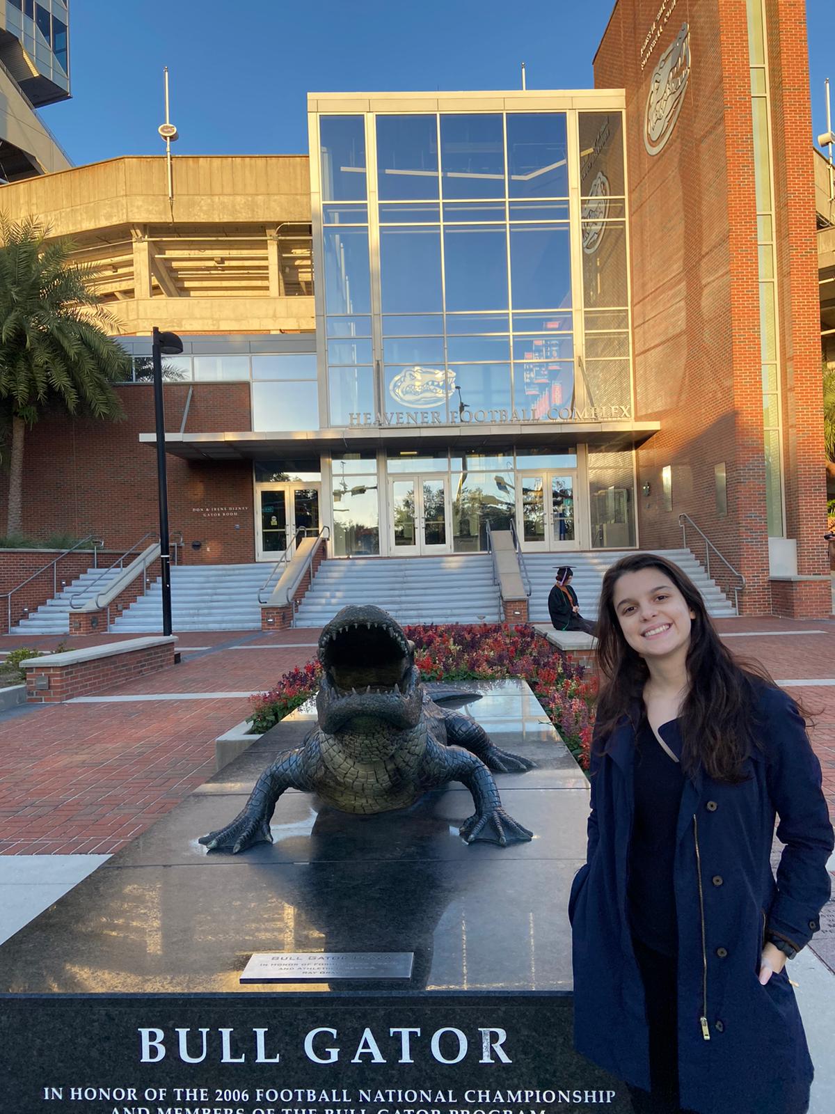 O sonho de trilhar o caminho acadêmico foi se concretizando e a levou em janeiro deste ano para os Estados Unidos, onde hoje cursa doutorado na Universidade da Flórida (UF) em Engenharia de Computação, na área de Machine Learning* e otimização de performance humana. A mudança foi rápida: desde que soube da vaga para bolsa até chegar a Gainesville, onde fica a instituição, foram apenas seis meses. “Conversei com o professor (meu atual orientador) e já comecei a aplicar. Tive menos de duas semanas para estudar e fazer as provas de proficiência em inglês (TOEFL) e o GRE, um exame padronizado para pós-graduação (tipo o Enem de pós-graduação)”, afirmou.