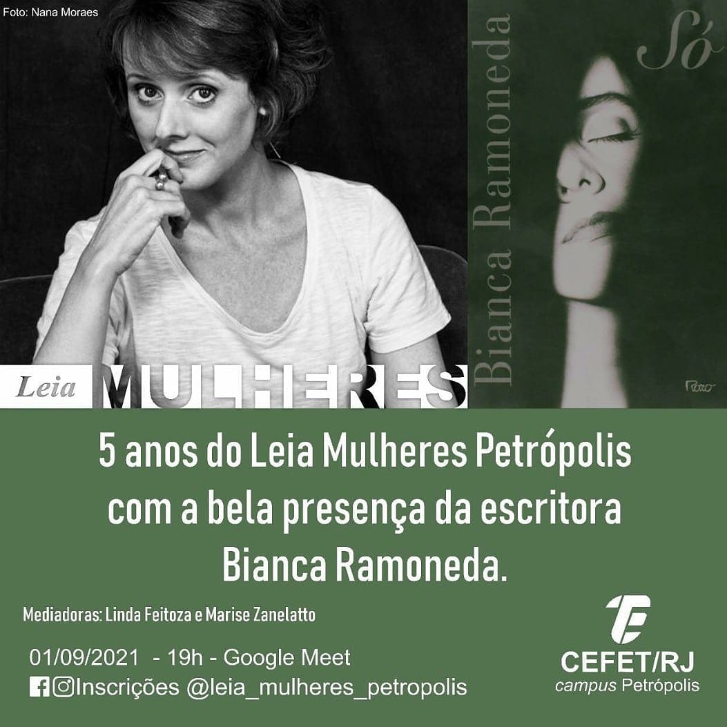O evento acontecerá às 19h pelo aplicativo Google Meet. A mediação será realizada por Linda Feitoza e Marise Zanelatto. Os interessados em participar devem solicitar o link do evento por meio das redes sociais – Leia Mulheres Petrópolis no Instagram e grupo Leia Mulheres Petrópolis-RJ no Facebook.