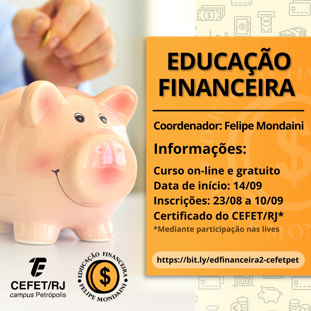 Inscrições: até 10/09 pelo link https://bit.ly/edfinanceira2-cefetpet