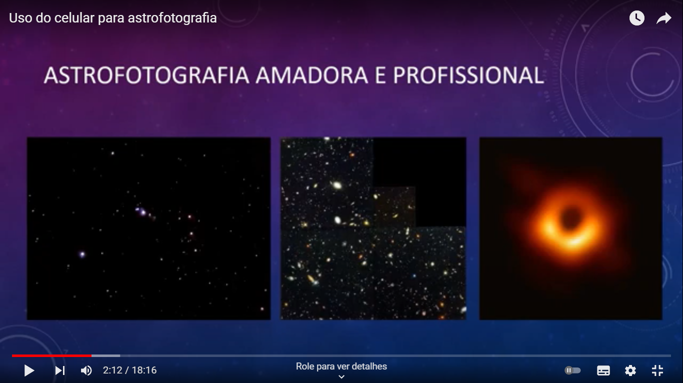 O canal do YouTube do projeto apresenta vídeos explicativos sobre fenômenos astronômicos e também sobre ferramentas usadas na astronomia