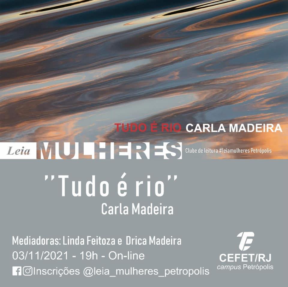 Na próxima quarta-feira, dia 3 de novembro, o clube de leitura Leia Mulheres Petrópolis vai debater o livro de estreia da jornalista e escritora mineira Carla Madeira: “Tudo é rio”. O romance – que apresenta uma narrativa sensível e, ao mesmo tempo, madura – conta a história do casal Dalva e Venâncio, que após passarem por uma perda trágica, se envolvem com a prostituta Lucy, formando um triângulo amoroso.