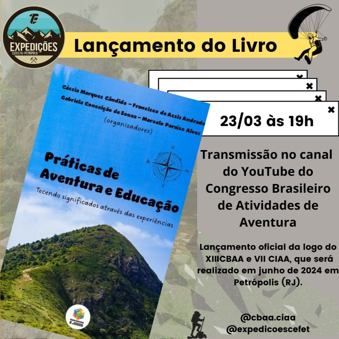 Na próxima quinta-feira, dia 23 de março, às 19h, o projeto Expedições, do Cefet/RJ Petrópolis, participará do lançamento do livro “Práticas de aventura e educação: tecendo significados através das experiências”, evento organizado pelo Instituto Federal do Rio de Janeiro (IFRJ) – campus Resende.