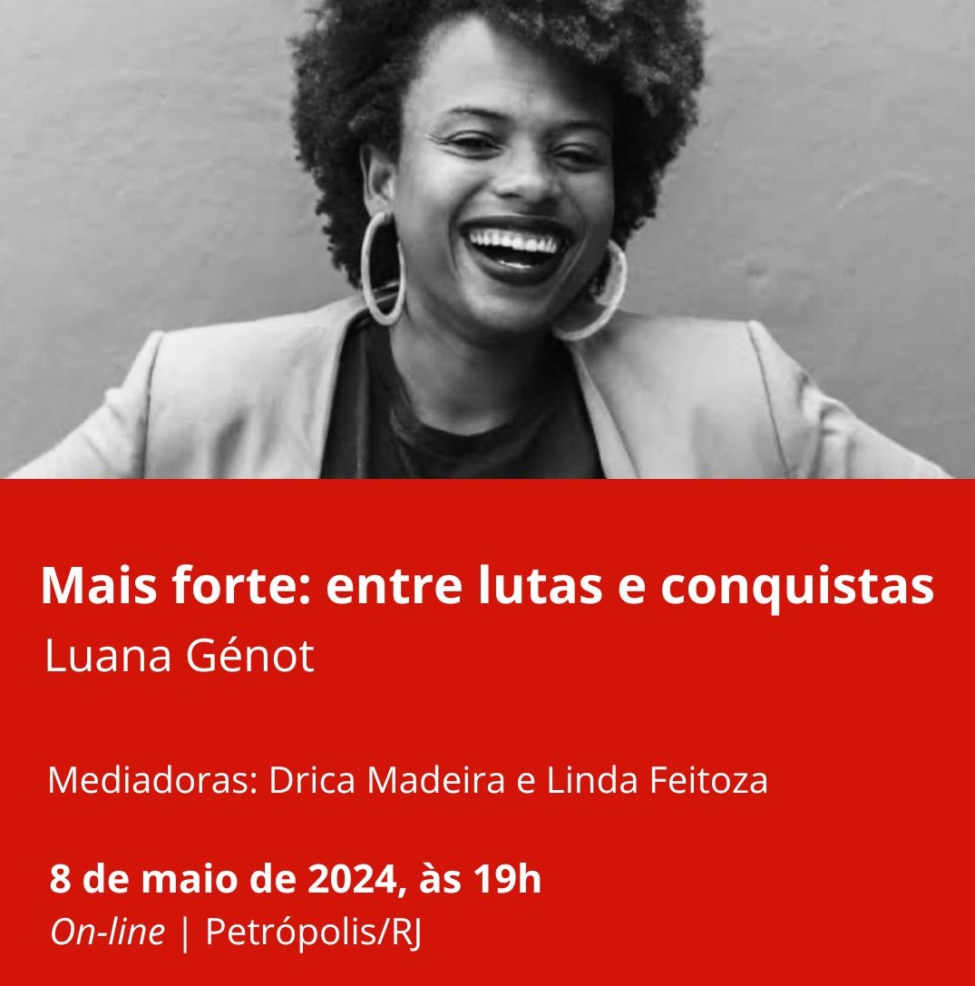 Maio promete um encontro memorável no Leia Mulheres Petrópolis. O clube de leitura vai debater a obra “Mais forte: entre lutas e conquistas”, da executiva, apresentadora e autora Luana Génot. Temas como autoestima, beleza, maternidade, empreendedorismo e racismo são reunidos no livro a partir das opiniões e vivências da escritora, que é mestre em Relações Étnico-Raciais pelo Cefet/RJ e presidente e diretora executiva do Instituto Identidades do Brasil.