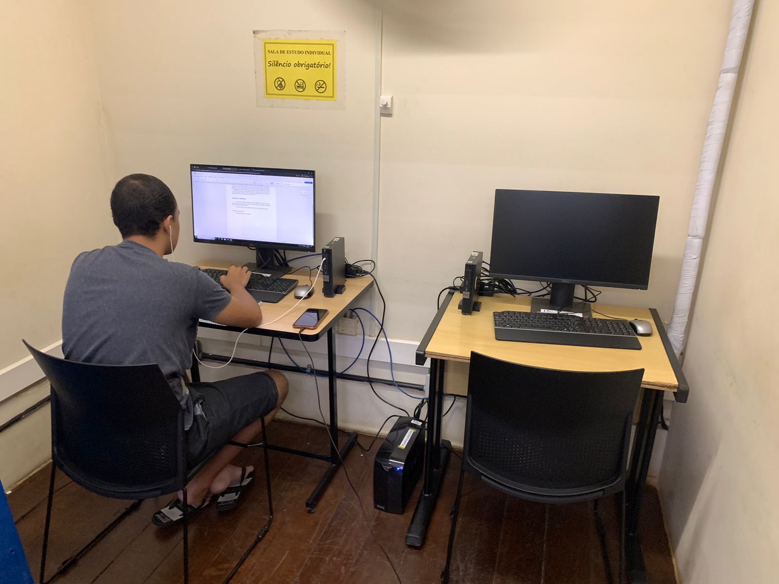Durante o período de obra no 1º andar (térreo) da Biblioteca do Cefet/RJ Petrópolis, o espaço reorganizou suas atividades no 2º andar. A partir deste mês de abril, foram disponibilizados computadores (com internet) para uso dos alunos. Além disso, foi organizada uma sala para estudo em grupo. Confira: