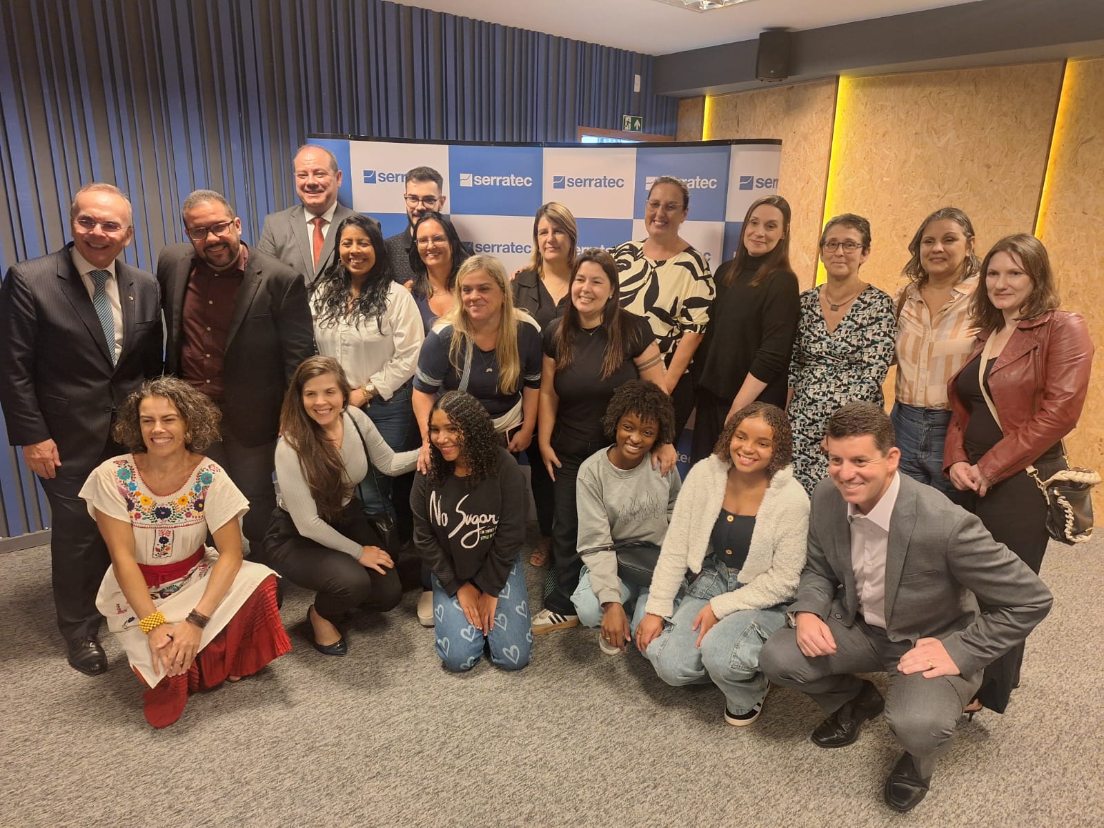 Representantes das instituições participantes do Meninas STEM Petrópolis Tec Hub no evento de apresentação do projeto, realizado no Serratec