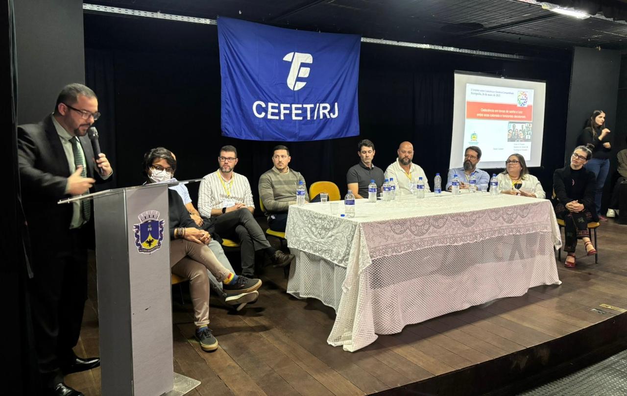 Além de Felipe e Glauco, fizeram parte da mesa de abertura o gerente acadêmico da unidade, Jurair Rosa; o coordenador do curso de Licenciatura em Física, Marcos Corrêa; o coordenador do curso de Licenciatura em Matemática, Leandro Tavares; o coordenador institucional do Pibid, João Paulo Fernandes; a professora Isabel Martins (Nutes/UFRJ); o diretor do CIEP Cecília Meireles, Adriano Fecher; e as vereadoras de Petrópolis Júlia Casamasso e Lívia Miranda.