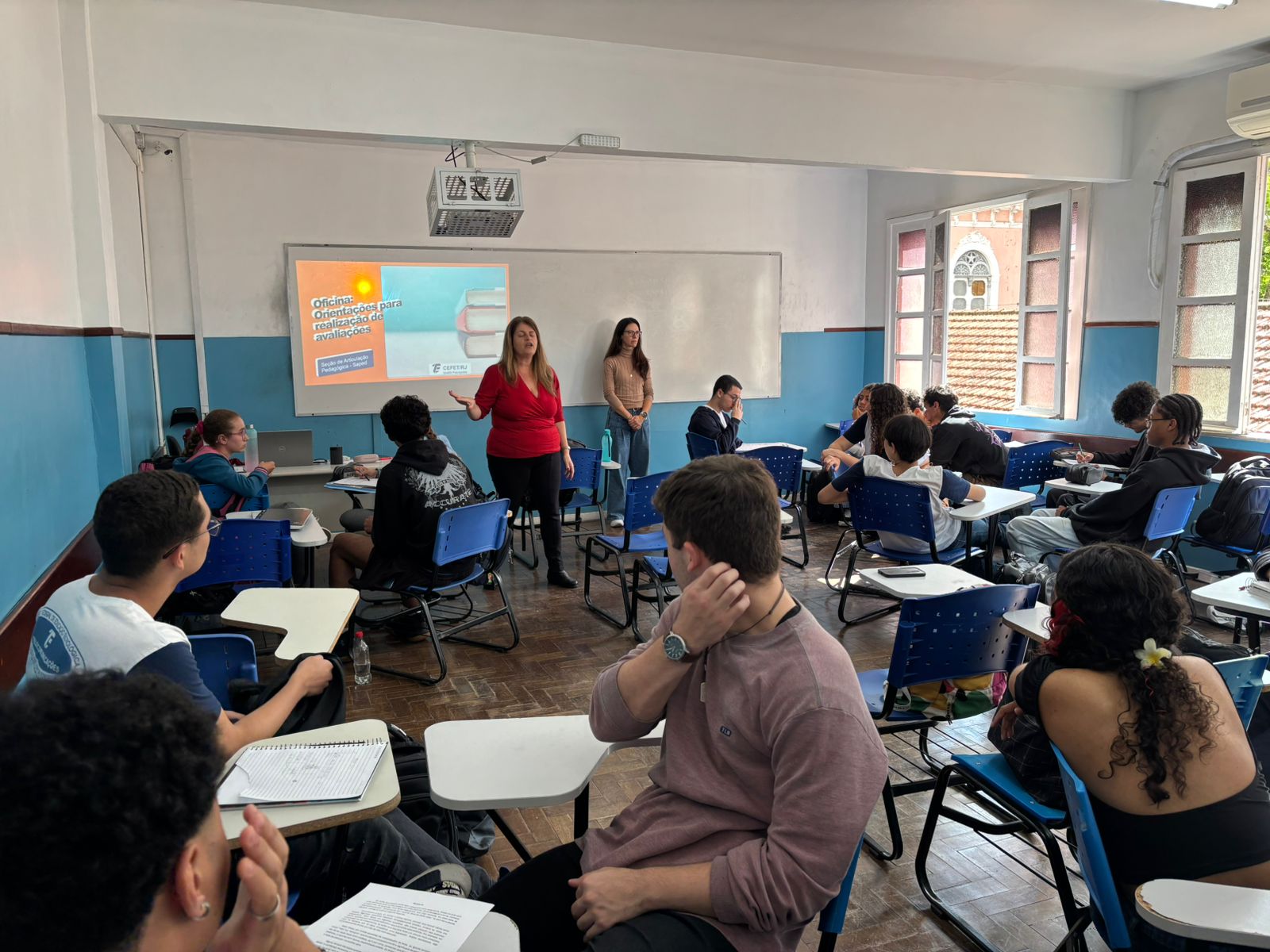 Na segunda-feira, dia 8 de setembro, a Seção de Articulação Pedagógica (Saped) do Cefet/RJ Petrópolis promoveu a oficina "Orientações para a realização de avaliações", voltada para todos os alunos do 1º ano do Curso Técnico em Telecomunicações Integrado ao Ensino Médio. O principal objetivo da atividade foi orientar os estudantes sobre como se preparar adequadamente para avaliações e provas, sejam elas elaboradas pelos professores ou exames como o Enem.