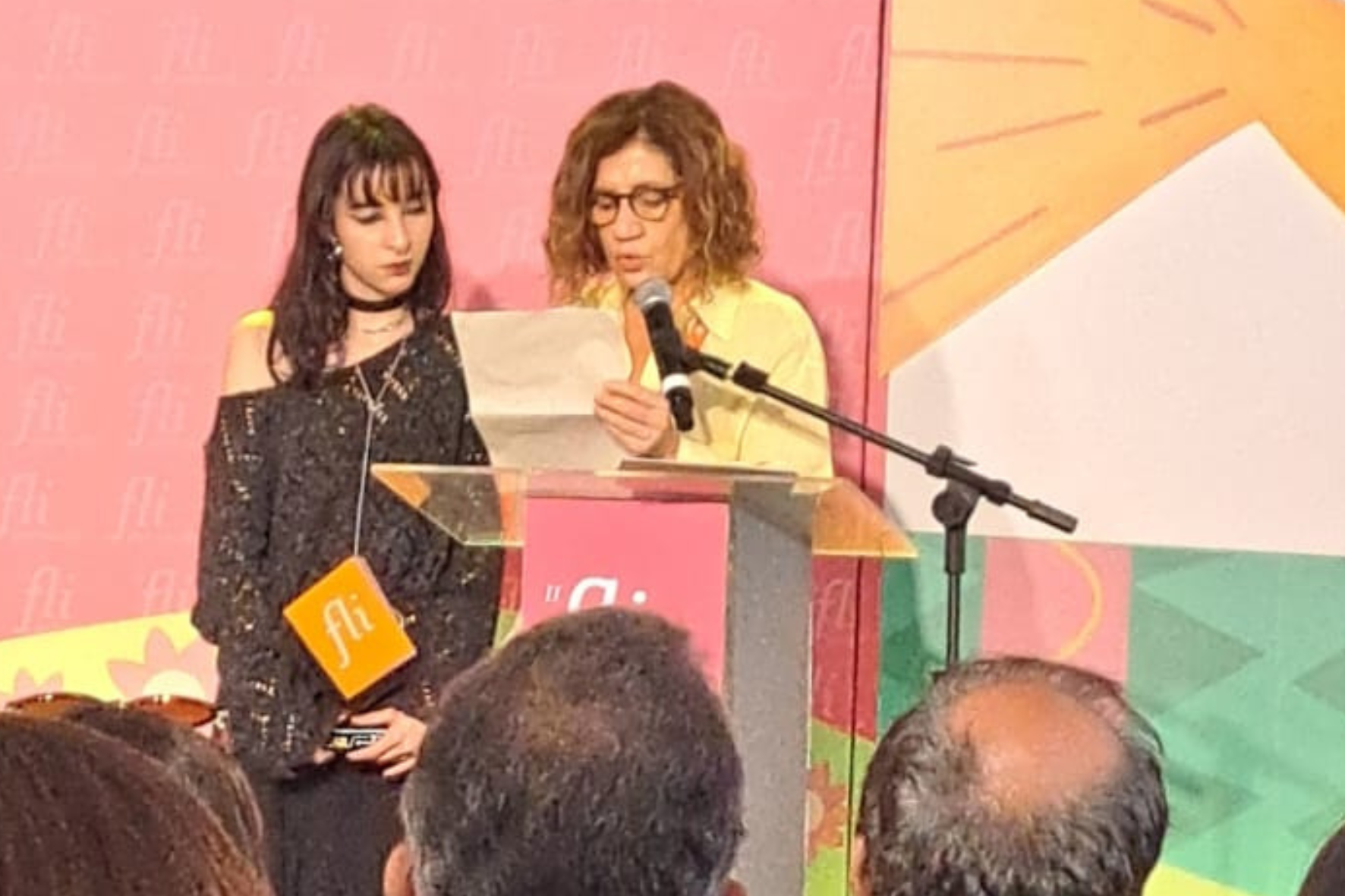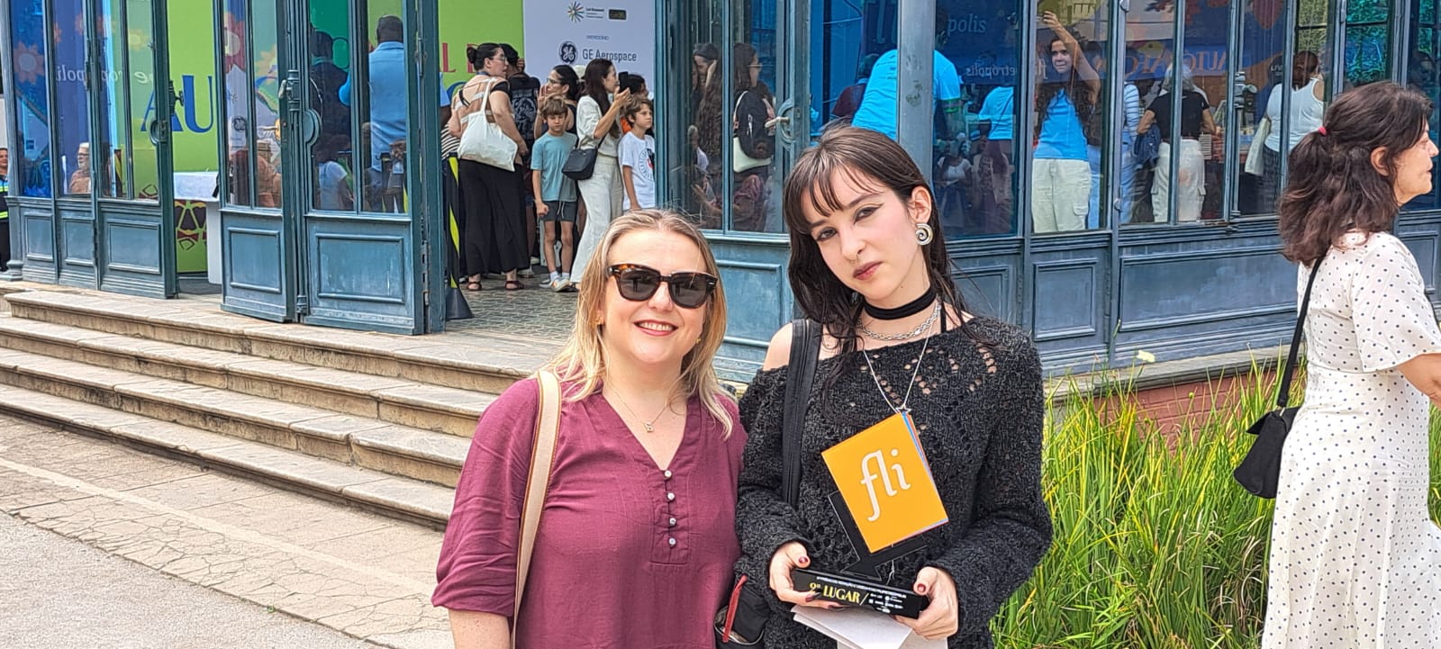 A professora Suzana Klôh com Ana Luiza Carvalho no Flipetrópolis