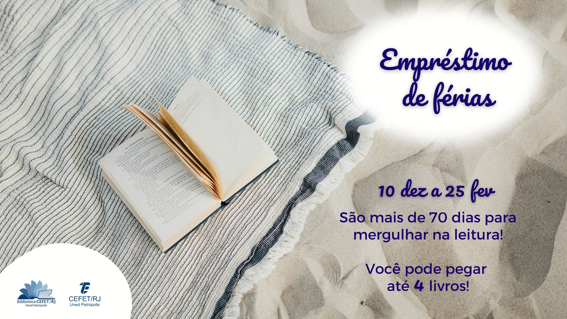 A Biblioteca do Cefet/RJ Petrópolis iniciou nesta quarta-feira, dia 10 de dezembro, o empréstimo prolongado durante o período de férias acadêmicas. Você poderá pegar até quatro livros e somente devolvê-los no dia 25 de fevereiro de 2026! Aproveite para mergulhar na leitura!