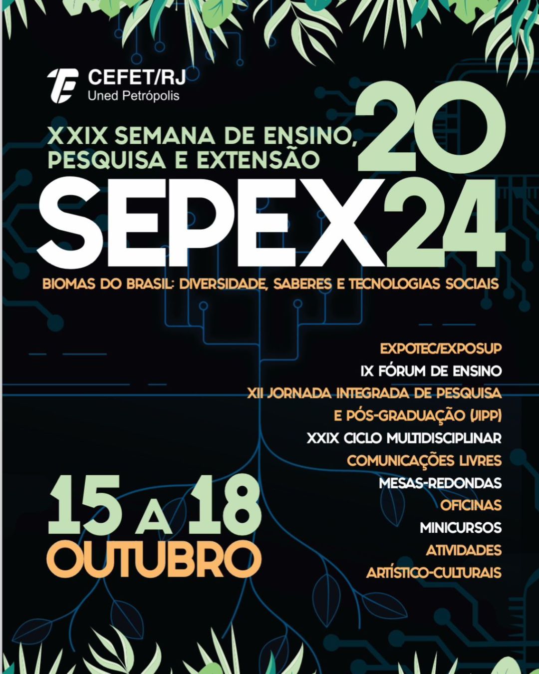 O Cefet/RJ Petrópolis vai promover a Semana de Ensino, Pesquisa e Extensão (Sepex 2024) nos próximos dias 15 a 18 de outubro. O evento reúne atividades acadêmicas, educacionais e...