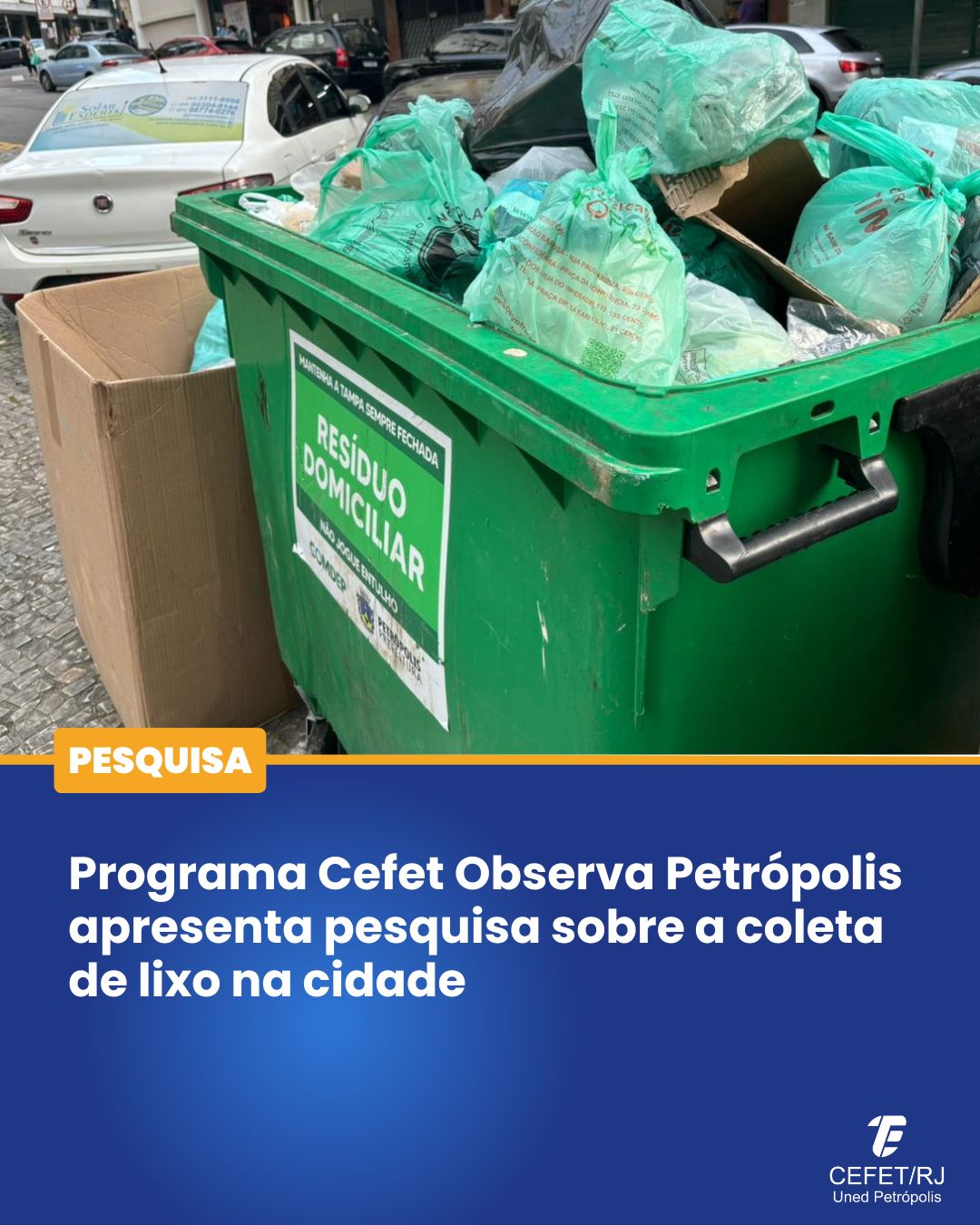 O programa de extensão Cefet Observa Petrópolis (COP) divulgou em setembro o relatório final da sua pesquisa “A coleta de lixo na cidade de Petrópolis”. Realizado com 300...